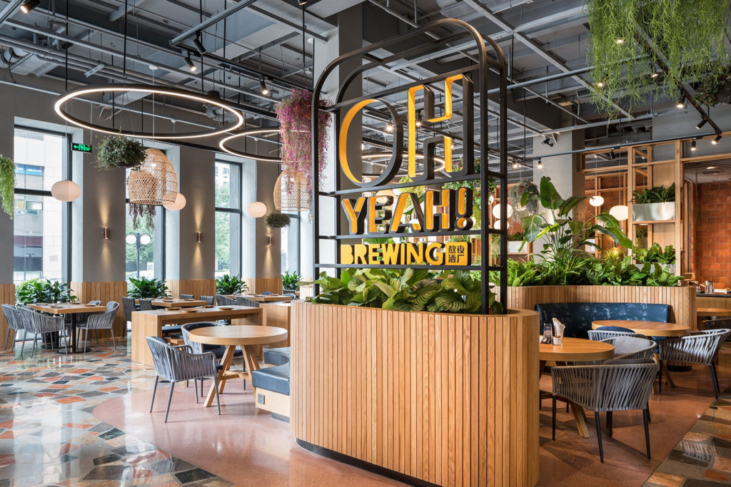 Innovation in brand-building is about taking an approach that hasn’t been taken before; having the vision to see things differently and putting that vision into action. Oh Yeah Brewing is nestled in the center of Beijing’s business district of Guo Mao, amongst architectural landmarks such as the CCTVx tower and the China World Trade Centre. With Beijing’s financial hub as its neighboring clientele, the brewery looks to attract the up-and-coming affluent Chinese who seek a relaxed yet more modern social environment. The well-traveled Chinese founder wanted to develop a new atmosphere that would challenge the hard-surfaced, grungy, industrial garages of your typical craft beer bar. An experienced expert in microbrewing and F&B boss put his dream into practice: creating a beer paradise to allow city-dwellers to escape from the difficulties and pressures of urban life. He wanted to create a comfortable space where people could sit back with friends for hours-on-end, enjoying delicious bites and uncomplicated, easy-to-drink, fresh beer.