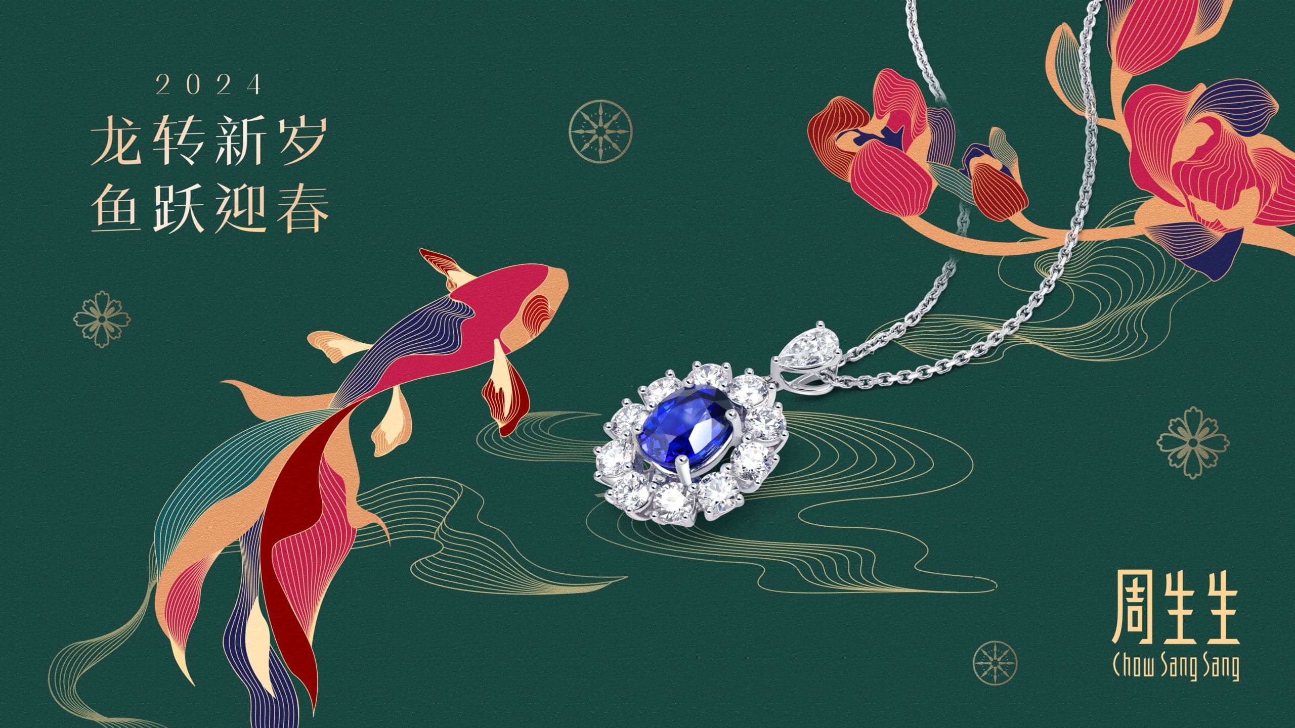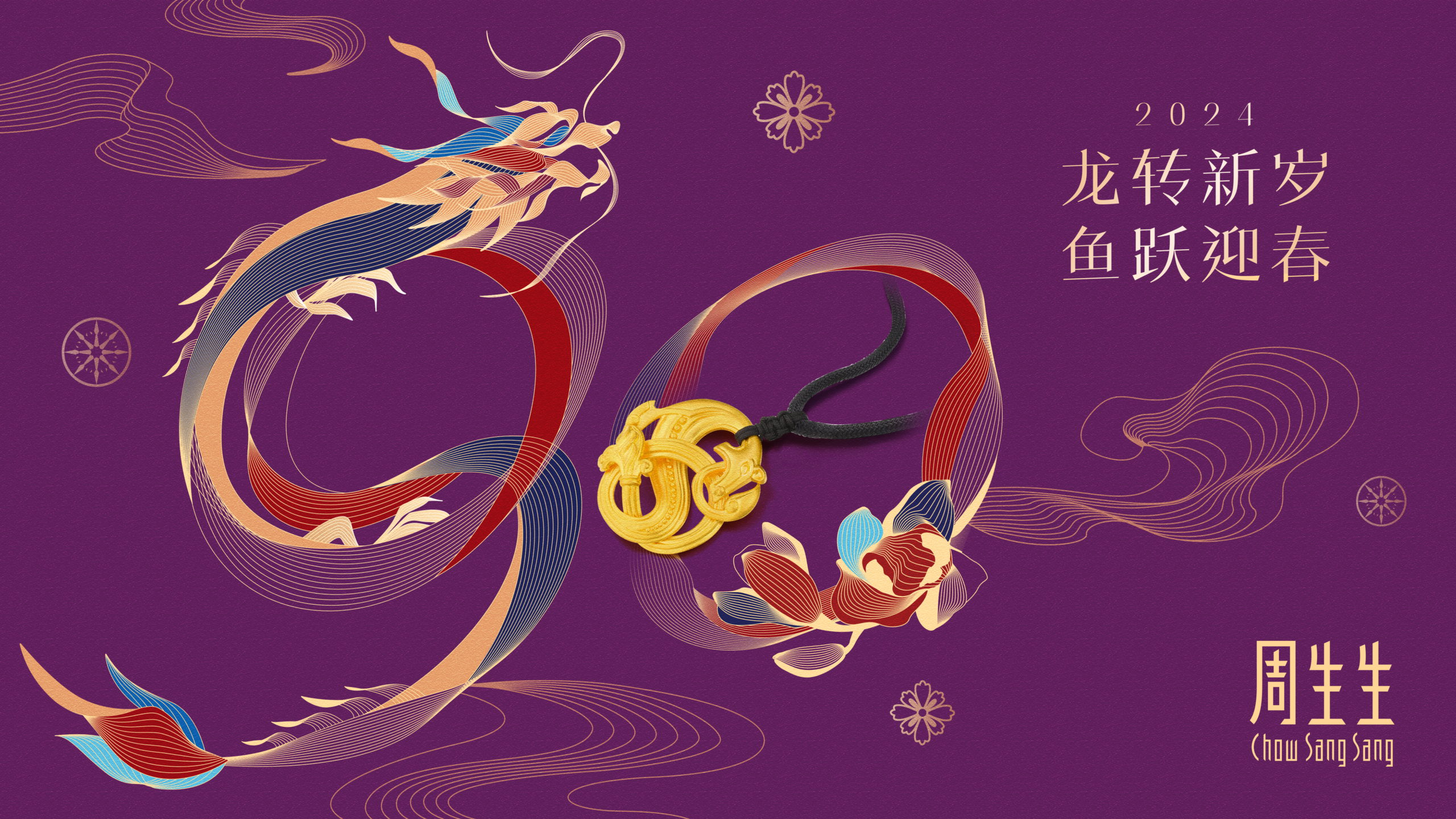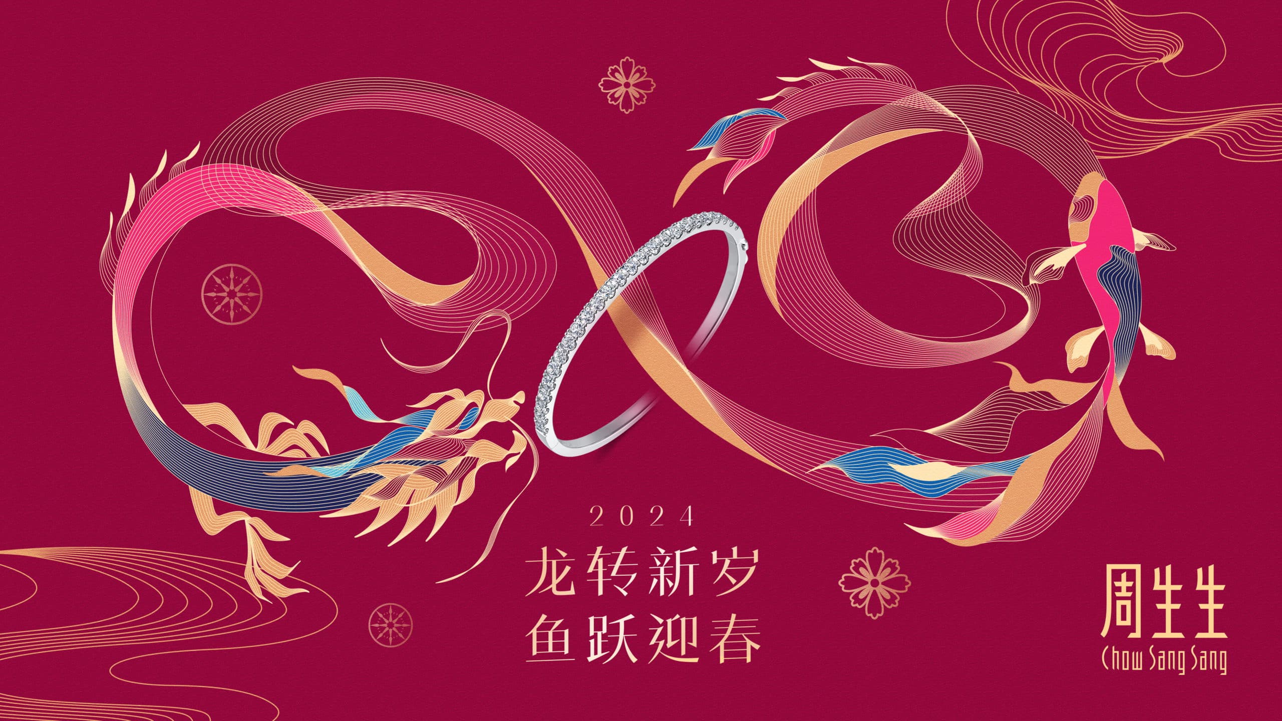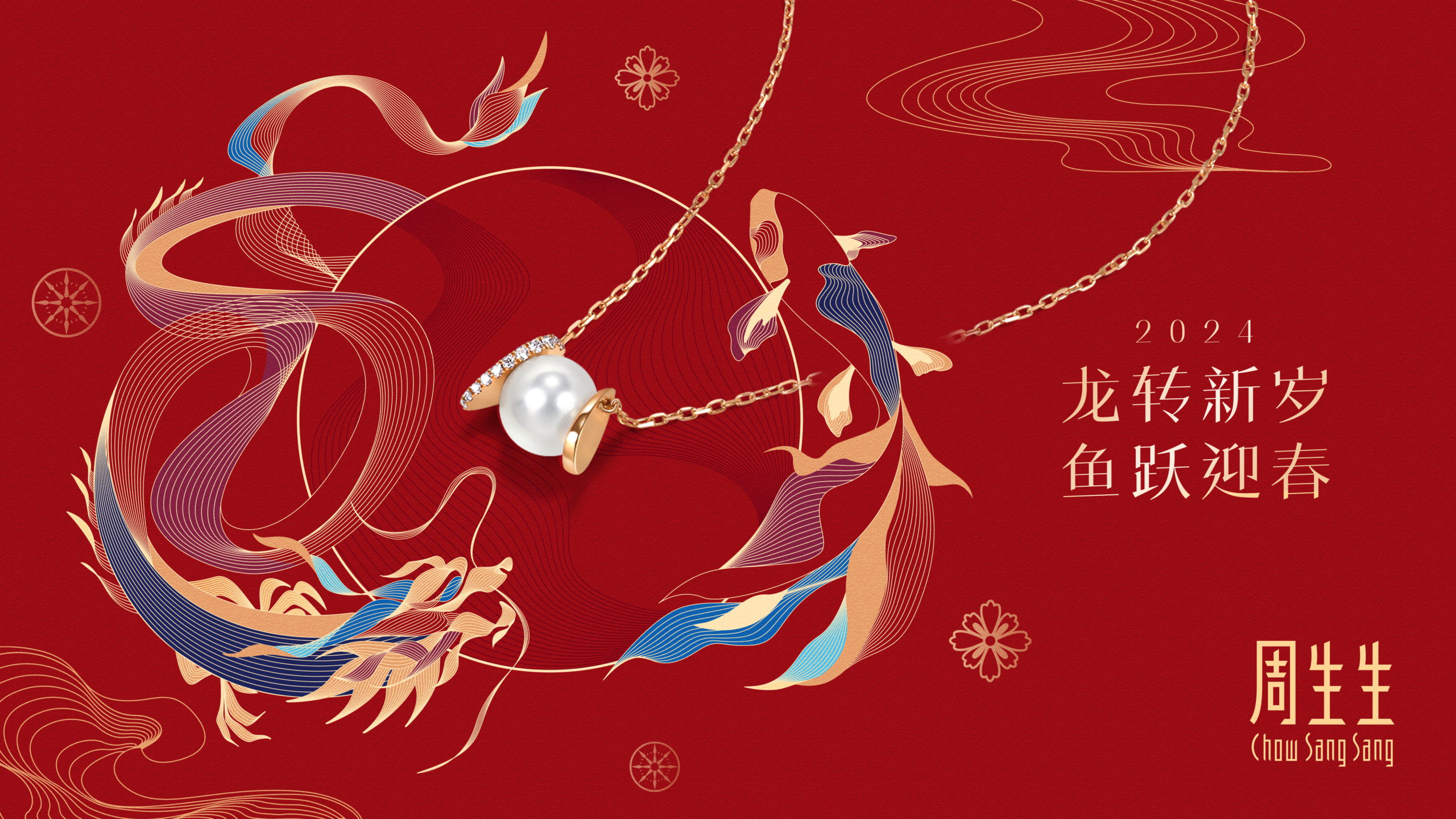As part of the campaign, we designed four key visuals using different composition styles with the dragon and fish being the main elements. The cover of the gift box features a Dragon Pearl with the Chow Sang Sang logo, adorned with auspicious clouds and waves.